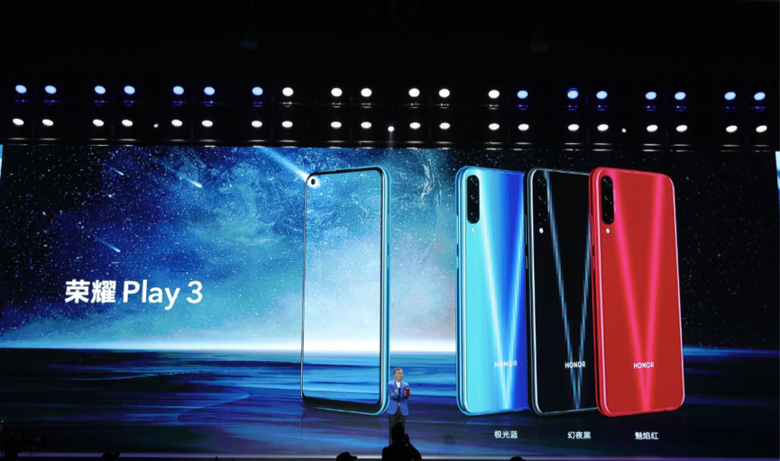 此次發(fā)布會(huì)還帶來(lái)了全新升級(jí)的榮耀Play系列的首款新品榮耀Play3。榮耀Play3擁有三個(gè)千元內(nèi)“首款嚇人配置”,包括“首款配備4800萬(wàn)像素硬件直出三攝”、“首款搭載旗艦級(jí)魅眼全視屏潮設(shè)計(jì)”以及2.0“全場(chǎng)景加速引擎”,更有方舟編譯器、EROFS超級(jí)文件系統(tǒng)、GPU Turbo、LINK Turbo、AI智慧通信等旗艦級(jí)自研技術(shù)全面加持,將銳科技進(jìn)行到底,助力榮耀Play3成為檔位王者。榮耀Play3將在9月10日開(kāi)啟預(yù)售,并于9月17日在VMALL商城、京東、天貓、蘇寧易購(gòu)、唯品會(huì)、國(guó)美、榮耀親選七大線上平臺(tái)及線下同步開(kāi)售,幻夜黑、魅焰紅、極光藍(lán)三種配色最低999元起。