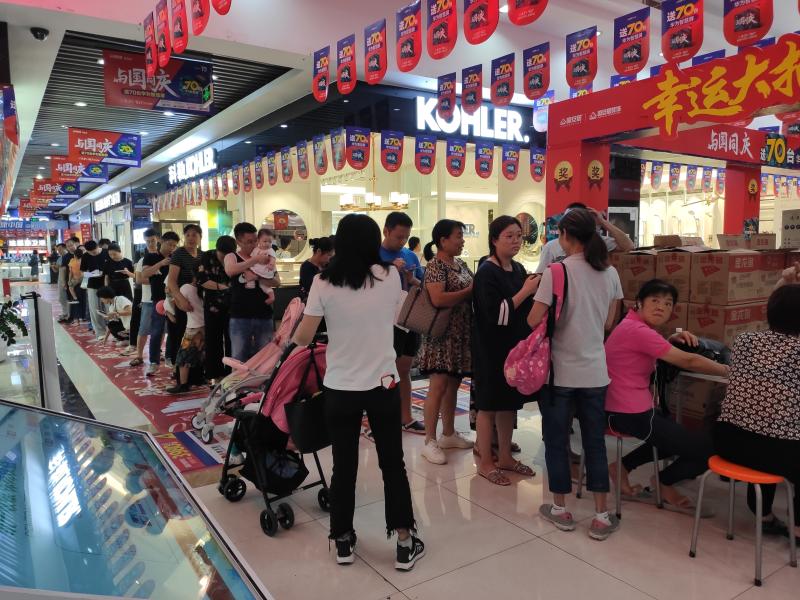 10月7日,長(zhǎng)假最后一天,也是抽獎(jiǎng)活動(dòng)即將揭曉的一天。記者在市場(chǎng)上轉(zhuǎn)了一圈發(fā)現(xiàn),各種讓人眼花繚亂的優(yōu)惠活動(dòng)營(yíng)造出紅火、熱鬧的促銷(xiāo)場(chǎng)面,面對(duì)商家的賣(mài)力吆喝,不少消費(fèi)者選擇在長(zhǎng)假最后一天下單。在恒潔衛(wèi)浴店內(nèi),打出了國(guó)慶最大優(yōu)惠促銷(xiāo)活動(dòng)的口號(hào),店內(nèi)人頭攢動(dòng),營(yíng)業(yè)員忙碌到嗓子都變得沙啞?!皣?guó)慶長(zhǎng)假至今,我們的銷(xiāo)售額是平時(shí)的5倍,即使累點(diǎn)也開(kāi)心?!睜I(yíng)業(yè)員高興地說(shuō)?!皬?月21日促銷(xiāo)活動(dòng)開(kāi)始,我們衣柜的訂單就大幅上漲,已經(jīng)接到70多套的訂單?!彼鞣苼喴鹿竦牡觊L(zhǎng)介紹,國(guó)慶長(zhǎng)假促銷(xiāo)活動(dòng)的效果比“五一”假期時(shí)還要理想。