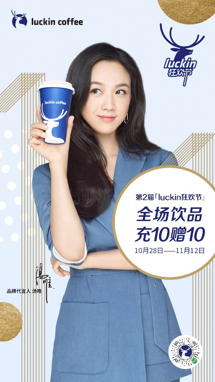 本次2019年雙11第2屆luckin狂歡節(jié),長達(dá)16天的“充10贈10”的超大力度優(yōu)惠,同時疊加周邊產(chǎn)品88折、“瑞幸X優(yōu)酷特惠套餐”等多重活動。不但優(yōu)惠力度堪稱最大,同時,包括湯唯、肖戰(zhàn)和馮唐等各種明星名人IP聯(lián)名潮流周邊產(chǎn)品的參與打call,也讓這屆luckin狂歡節(jié)異彩紛呈,堪稱國內(nèi)咖啡連鎖行業(yè)內(nèi)最受矚目,也是飲品行業(yè)力度最大的雙11促銷。
