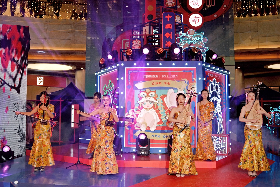 慶典當(dāng)天,豐富多彩的異業(yè)活動貫穿全場,紅包雨搖一搖的現(xiàn)場互動小游戲為慶典帶來了一波又一波歡呼;街舞串燒、國潮T臺大秀、樂隊演奏、漢服快閃秀、近景魔術(shù)等精彩表演更是將現(xiàn)場氣氛不斷推向高潮。作為今年周年慶的主打形象,“國潮 IP”——南獅霸氣亮相,呆萌與喜慶的形象一出場便引爆現(xiàn)場,成為全場焦點。富有中國傳統(tǒng)文化內(nèi)涵的南獅與西方潮流電音的巧妙結(jié)合,碰撞出新穎而奇妙的火花,也讓在場觀眾體驗到了一場耳目一新的視聽盛宴。