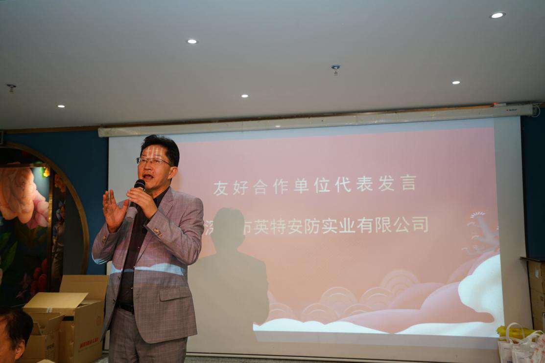 晚宴上,學(xué)會(huì)表彰了6家友好合作單位以資感謝支持,并邀請(qǐng)了其中的來(lái)自深圳市英特安防實(shí)業(yè)有限公司閆建國(guó)總經(jīng)理代表發(fā)言。