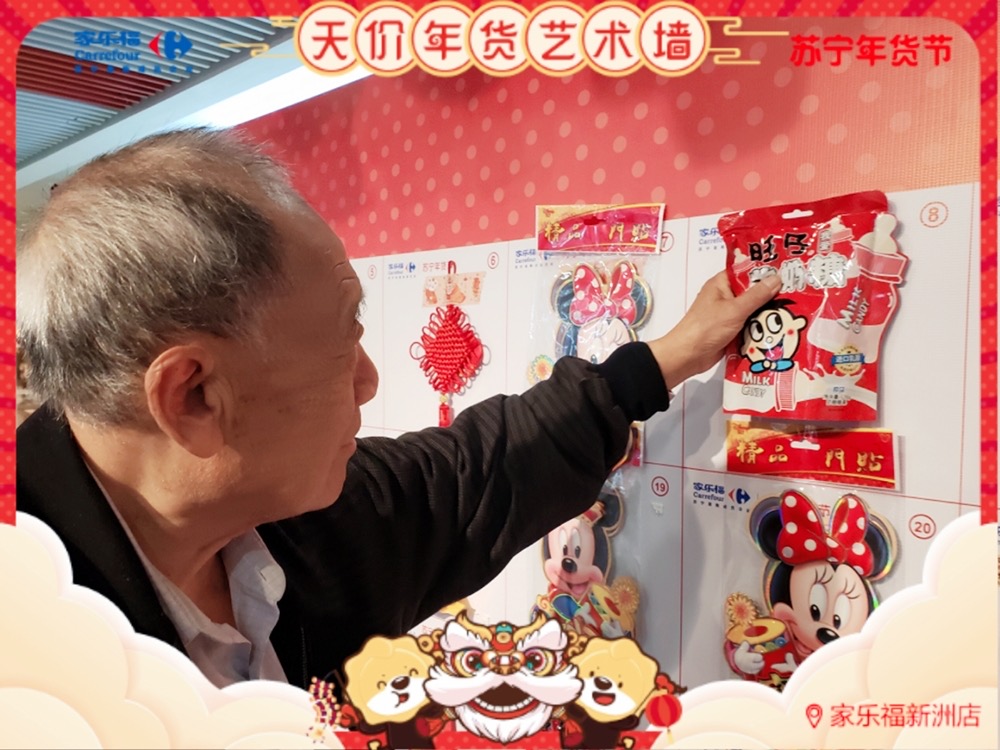 天價年貨藝術(shù)墻,藝術(shù)年貨送不停 ! 1月17日 至 1月 19 日 , 家樂福華南區(qū)廣州員村店、珠海吉大店、福州寶龍店 、廈門中華城店及 深圳新洲店 (活動時間為1.16-1.18) 活動繼續(xù) 。 禮品數(shù)量有限,每天送完即止 !蘇寧家樂福 實力助你過年味滿滿的春節(jié) ,邀請您 來把年貨驚喜領(lǐng)回家 !