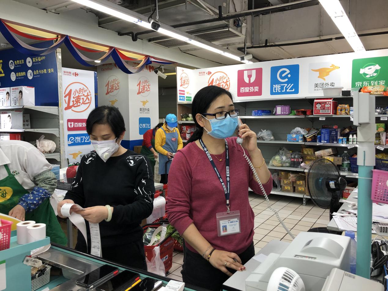 “最近十幾天,我們每天都要工作12個(gè)小時(shí)以上。”說(shuō)這話的正是家樂(lè)福深圳梅林店的電商主管王立華,由她帶領(lǐng)的5人小團(tuán)隊(duì)肩負(fù)起該店“配送到家”服務(wù)的揀貨、核單、打包、確認(rèn)、與騎手交貨等工作。疫情當(dāng)前為避開人群,更多的市民選擇在線上外賣平臺(tái)訂購(gòu)超市的商品配送到家,因此超市的線上訂單猛增。為了實(shí)現(xiàn)“1小時(shí)速達(dá)”的承諾,避免訂單超時(shí),王立華要求團(tuán)隊(duì)從出單到打包好不能超過(guò)20分鐘,每天過(guò)手的各類商品有上千件?!凹覙?lè)福梅林店的賣場(chǎng)面積大概是5000平方米,每天上下樓跑多少趟具體倒是沒(méi)有統(tǒng)計(jì)過(guò),但像現(xiàn)在特殊時(shí)期,我們一天在網(wǎng)上接到的‘配送到家’服務(wù)訂單基本都要超過(guò)800單,有時(shí)候會(huì)到1000單?!蓖趿⑷A回答記者時(shí),額頭上一直有細(xì)密的汗珠,聲音也有點(diǎn)沙啞了。