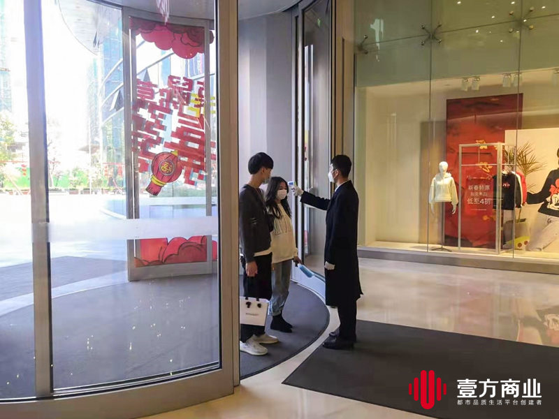 環(huán)境之外,壹方商業(yè)還配合政府加強(qiáng)疫情預(yù)防工作,及時(shí)發(fā)現(xiàn)可能的感染者,避免病毒的進(jìn)一步傳播。在營項(xiàng)目均要求顧客戴口罩進(jìn)入,并設(shè)立多個(gè)體溫監(jiān)測(cè)點(diǎn),安排專人對(duì)進(jìn)場(chǎng)顧客進(jìn)行無縫全覆蓋的體溫監(jiān)測(cè),確保為人民群眾營造有序、健康、衛(wèi)生的環(huán)境,有力保障了社會(huì)民生穩(wěn)定。