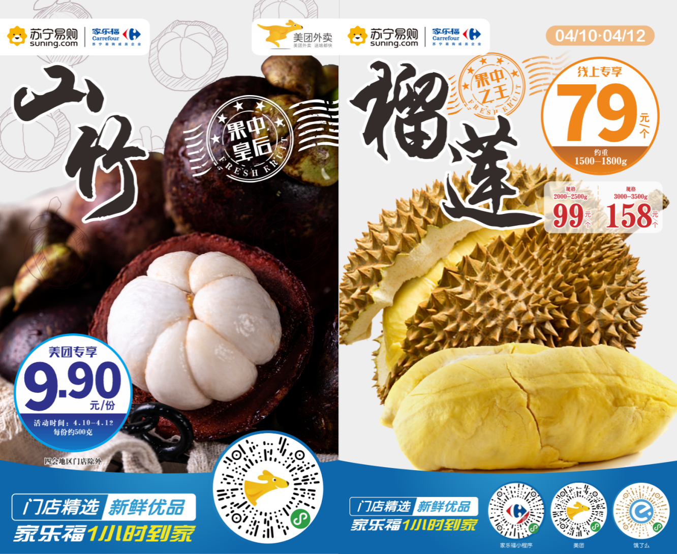 此外,周末還有另外兩款生鮮爆品必須安利給小伙伴!4月10日至12日,9.9元/份的山竹搭配79元/個(gè)的榴蓮,華南市民再也不怕大補(bǔ)上火了呢!特別注意的是,優(yōu)惠僅供家樂(lè)福線上專享,“碼”上安排?。▍瞧G 通訊員蔡民婷)