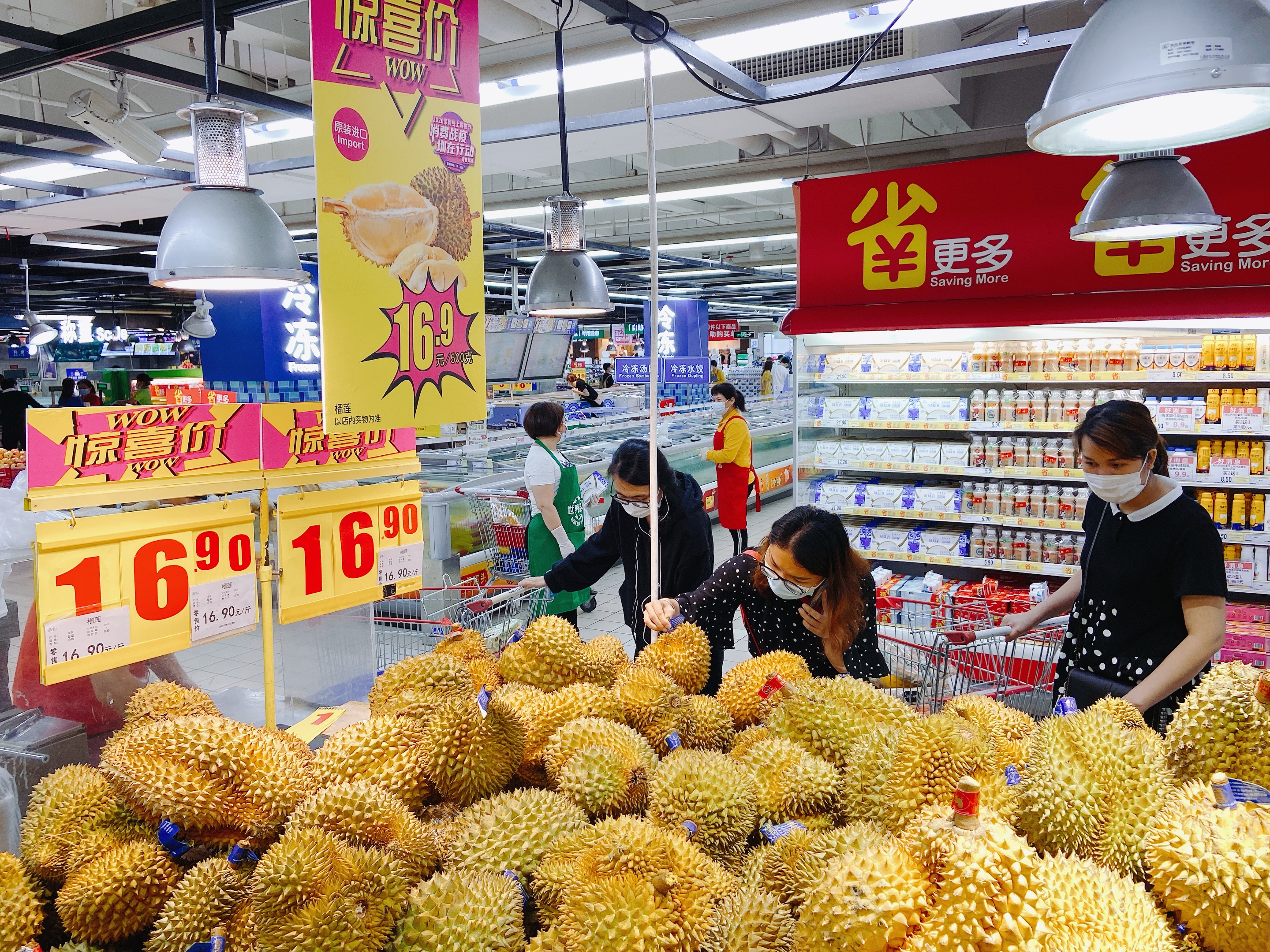 4月19日,記者來到家樂福一門店實(shí)地探訪。剛一步入生鮮區(qū)域,便被“泰國進(jìn)口榴蓮,白菜價(jià)16.9一斤”的促銷口號(hào)所吸引。整個(gè)生鮮區(qū)不乏各色接地氣的促銷口號(hào),吆喝聲此起彼伏,吸引不少消費(fèi)者駐足選購。“剛上市的泰國金枕頭,你看這個(gè)個(gè)頭、還有這個(gè)味道你聞聞,(每斤)只要16.9,比我們小區(qū)附近的生鮮超市還便宜”,一位受訪者對(duì)高性價(jià)比的泰國榴蓮贊不絕口。此次探店,記者聽到消費(fèi)者最多的反饋是“品質(zhì)更好了,品種更多了”。家樂福深諳消費(fèi)者的需求,想要促進(jìn)消費(fèi),首先要給消費(fèi)者提供更多更好的選擇。“我們這次推出的’四月品鮮季’活動(dòng),有來自泰國、菲律賓等東南亞國家的反季水果,也有來自巴西、湖北的水產(chǎn)肉類。16.9元一斤的泰國金枕榴蓮、4.9元一斤的菲律賓切割蕉、25.9元一斤的湖北清水稻田蝦這幾天一直占據(jù)暢銷榜前三的位置”,該店負(fù)責(zé)人介紹。
