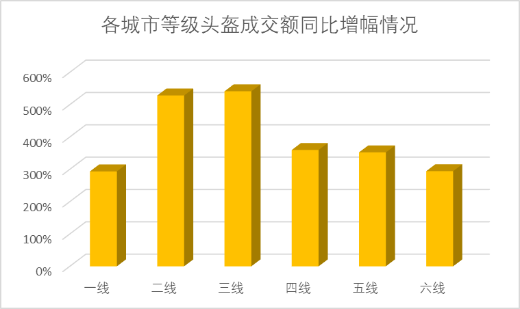 (各城市等級(jí)頭盔成交額同比增幅情況)