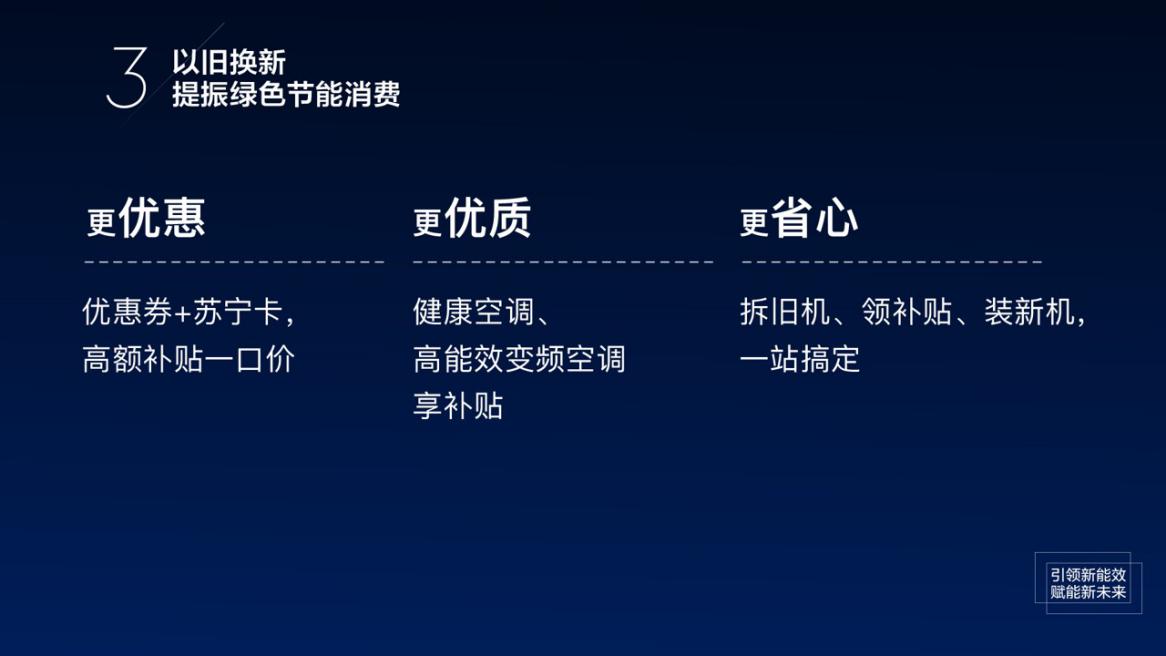 同時(shí),“新一級(jí)能效聯(lián)盟”還將持續(xù)開展“空調(diào)節(jié)能風(fēng)暴”等綠色消費(fèi)讓利活動(dòng)。該活動(dòng)涵蓋四重補(bǔ)貼,分別是老能效清倉、新能效補(bǔ)貼、以舊換新及分期免息,多管齊下加速新舊能效產(chǎn)品的切換、擴(kuò)大綠色消費(fèi)規(guī)模。