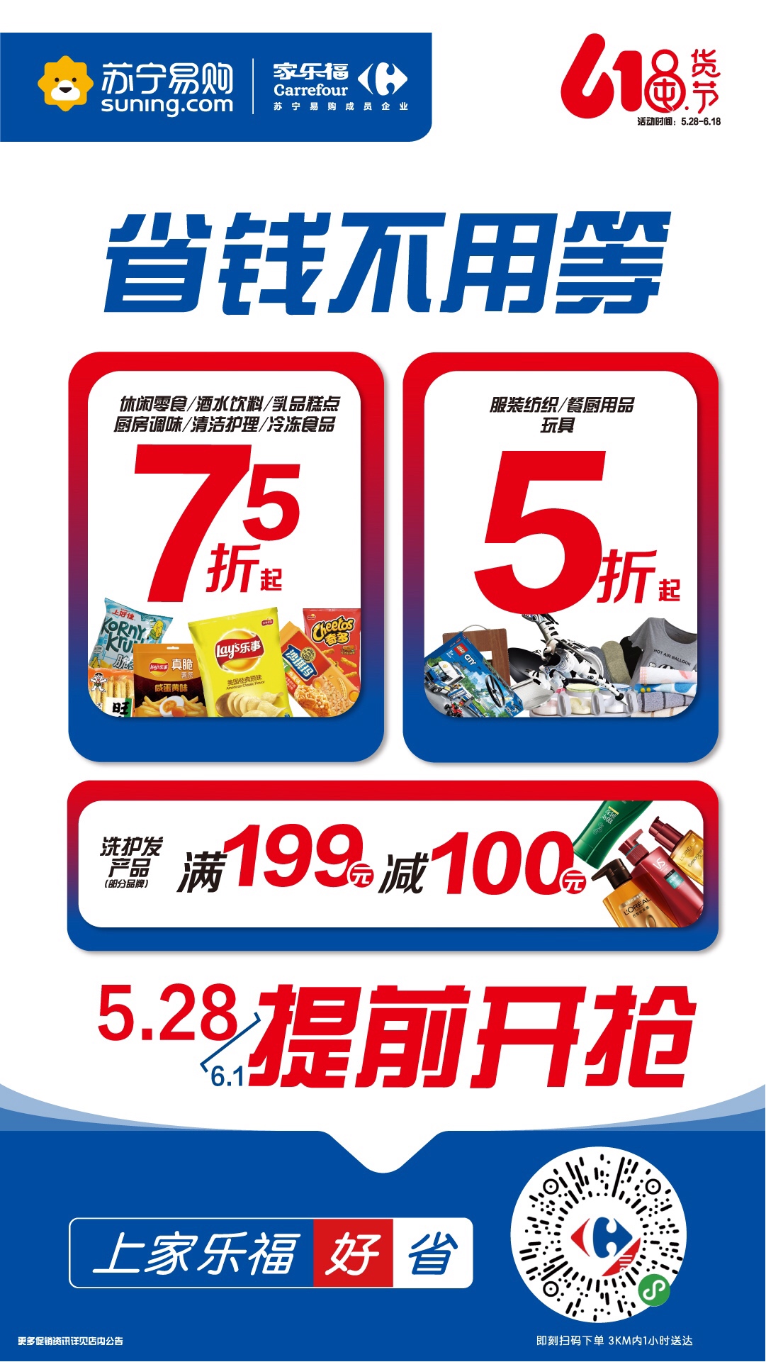 作為蘇寧陣營中的排頭兵、蘇寧大快消產(chǎn)業(yè)的核心部分,家樂福率先出戰(zhàn)。為了給消費(fèi)者提供充足時間選擇心儀的商品,家樂福618囤貨節(jié)即將拉開帷幕,讓消費(fèi)者盡享“618省錢不用等”的升級購物體驗(yàn)。