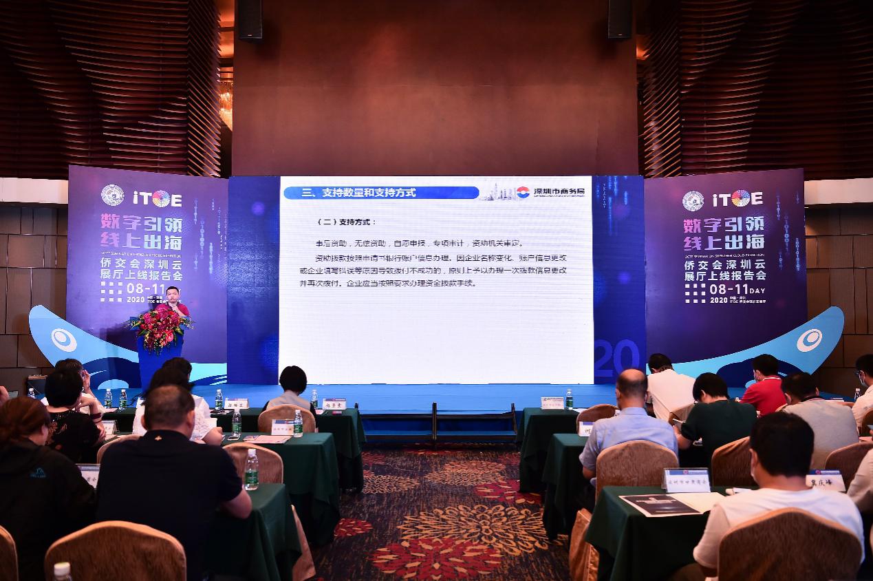 見圳客戶端·深圳新聞網(wǎng)2020年8月12日訊(記者 張俊達)昨天,“數(shù)字引領?線上出?!眱S交會深圳云展廳上線報告會在深圳綠景酒店三樓會議廳成功召開。以"數(shù)字引領?線上出海,提升企業(yè)國際競爭力"為主題,本次報告會重點展示“ITOE僑交會深圳云展廳”創(chuàng)新會展模式、解讀疫情之下外貿(mào)中小企業(yè)如何通過數(shù)字化轉(zhuǎn)型,并帶來2020年度最新中央外經(jīng)貿(mào)發(fā)展專項資金政策宣講。深圳多個商會、行業(yè)協(xié)會,以及僑企、港企、深圳外向型企業(yè)、展覽公司近200名代表參加報告會。