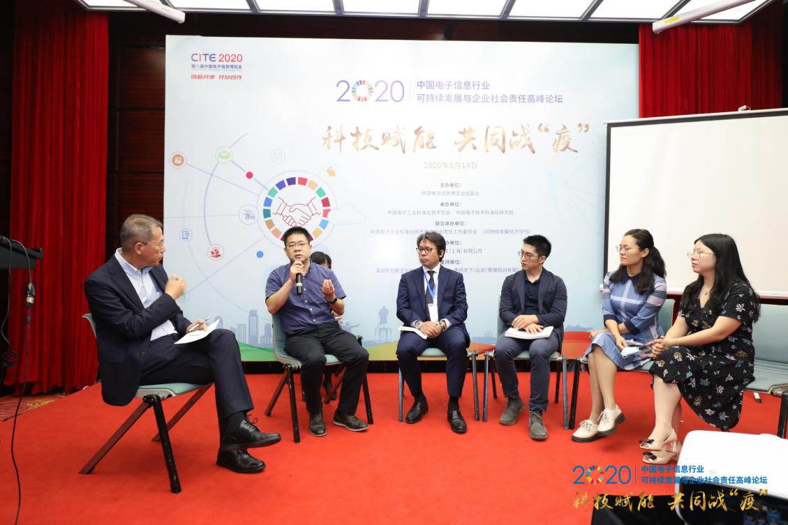 為更加全面生動地展現(xiàn)企業(yè)在抗擊疫情的典型實踐,論壇特別組織專題研討活動, 《可持續(xù)發(fā)展經(jīng)濟導(dǎo)刊》社長兼主編于志宏主持,中興通訊股份有限公司副總裁、無線架構(gòu)總經(jīng)理段向陽、索尼精密部件(惠州)有限公司董事總經(jīng)理小林克彥、騰訊公益慈善基金會項目總監(jiān)鄧江波、富士施樂高科技(深圳)有限公司CSR部長劉美華、深圳市創(chuàng)新企業(yè)社會責(zé)任促進中心主任曾亞琳共同參與研討,各位嘉賓積極分享企業(yè)的優(yōu)秀實踐,交流對科技抗疫的觀點與看法,為電子信息行業(yè)的責(zé)任價值創(chuàng)造與創(chuàng)新帶來思考與提供借鑒。