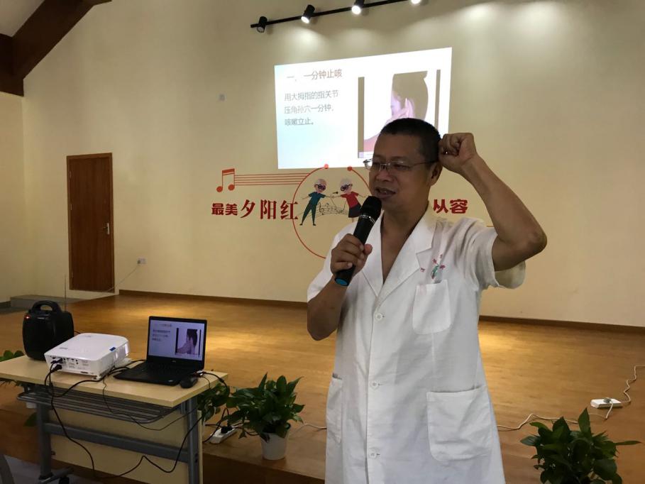 活動過程中,全場互動和諧有序:老年朋友們仔細聽講,積極提問,中醫(yī)專家耐心解答,現場手把手教老年人指位法,一分鐘解決疼痛、咳嗽、止喘等技法,現場學習、現場體驗,現場有效,激發(fā)了老年人的興趣,受到了老年人的歡迎。