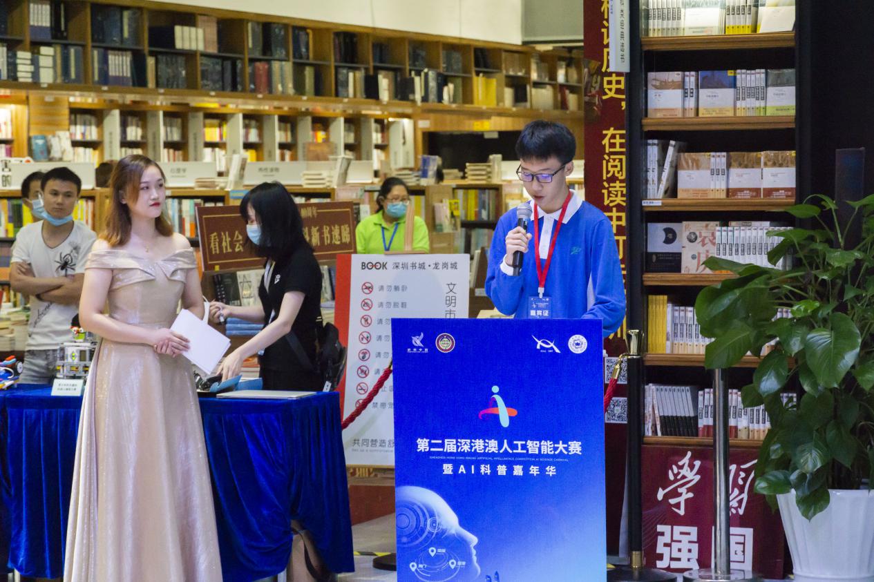 發(fā)布會現(xiàn)場,主辦方還特別邀請了首屆深港澳人工智能大賽冠軍選手——南科大附屬中學(xué)的張繼元同學(xué),作為優(yōu)秀參賽代表發(fā)表感言。在首屆大賽中,張同學(xué)獲得了有目共睹的成長,他表示:“感謝深港澳人工智能大賽暨AI科普嘉年華活動,給予了深港澳三地青少年同臺競技的平臺,讓三地青少年有了了解祖國發(fā)展歷程以及現(xiàn)在的輝煌成就的機(jī)會,這同時(shí)也增強(qiáng)了我們年輕一輩的民族自尊心,自己在機(jī)器人大賽所倡導(dǎo)的創(chuàng)新教育理念下,堅(jiān)持不懈,努力奮斗,報(bào)效祖國,回報(bào)父母,服務(wù)社會”。