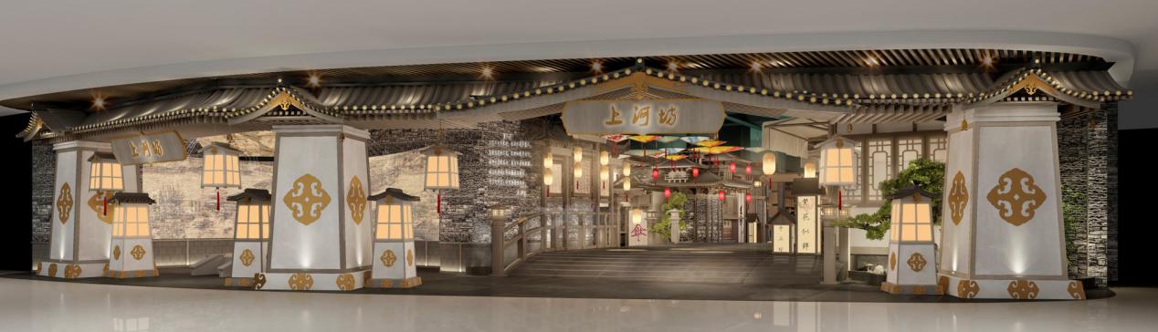 上河坊名稱源自于北宋著名畫(huà)家張擇端繪制的不朽杰作《清明上河圖》,這幅用高度現(xiàn)實(shí)主義手法創(chuàng)作的長(zhǎng)卷風(fēng)俗畫(huà),通過(guò)對(duì)市俗生活的細(xì)致描寫(xiě),生動(dòng)地再現(xiàn)了北宋汴京升平時(shí)期的繁榮景象。整部作品長(zhǎng)而不冗,繁而不亂,嚴(yán)密緊湊,有如一氣呵成,畫(huà)卷中大至原野、浩河、商廊,小至舟車人物、攤鋪、擺設(shè)、市招文字皆統(tǒng)組一起,零售門(mén)店與酒肆茶樓交相輝映,真實(shí)自然,令人有如臨其境之感。而位于寶安大仟里L(fēng)3層的上河坊主題街區(qū),還將融合古代建筑繁華街景與現(xiàn)代投影科技的結(jié)合,力求還原最真實(shí)的《清明上河圖》中汴河兩岸繁華的鬧市風(fēng)景,營(yíng)造“古街風(fēng)貌”的場(chǎng)景,融合“美食文化”與“非遺體驗(yàn)”的核心內(nèi)容,為消費(fèi)者呈現(xiàn)前所未有的購(gòu)物體驗(yàn)。