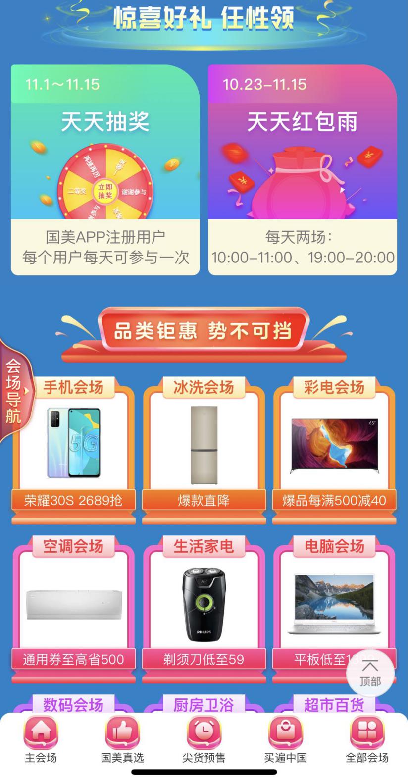 10月28日至11月25日,國美九九會(huì)員上線,只需九塊九,羊毛就能薅到手;10月30日,“買遍中國”直播杭州站開播,西湖美食便宜還好吃;11月1日-11月3日大促高峰啟動(dòng),各種紅包雨抽獎(jiǎng)嗨不停;11月4日至11月6日,萬人直播,空前視覺盛宴奉上;11月7日至11月10日,買遍歐洲直播活動(dòng),全球好物任你挑;后續(xù)還有返場(chǎng)福利等你來拿!