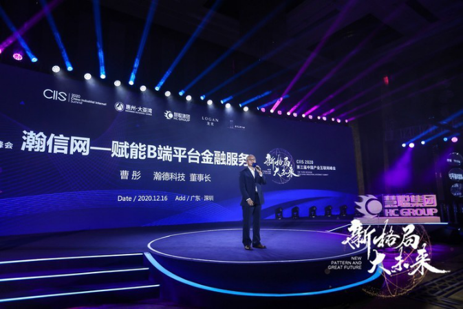 瀚德科技董事長(zhǎng)曹彤,發(fā)表題為《瀚信網(wǎng)-賦能B端平臺(tái)金融服務(wù)》主題演講。