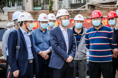 李卓一行在門口測溫登記后進入施工區(qū)域,實地調(diào)研了項目施工進度,同時聽取項目負責(zé)人詳細介紹了項目春節(jié)期間施工部署等相關(guān)情況,對項目周密詳細的安排表示肯定。