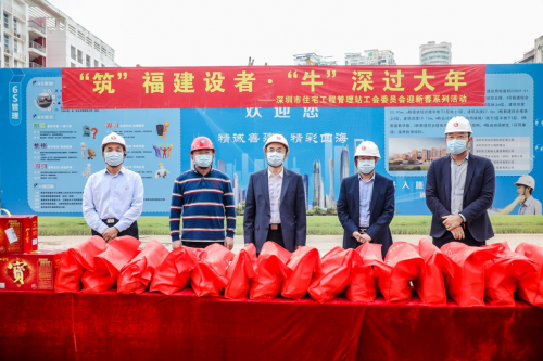 李卓對留深過年、春節(jié)加班的工友和管理人員表示感謝,他要求:一、要安排好所有留深工友、班組和管理人員,營造好氛圍,做好后勤保障工作;二、要嚴格按照工務(wù)署下發(fā)的關(guān)于春節(jié)期間不停工項目的安全生產(chǎn)、疫情防控的相關(guān)要求,開展施工生產(chǎn)。隨后,在一片歡樂祥和的氛圍里,工務(wù)署領(lǐng)導(dǎo)為工友們發(fā)放春節(jié)慰問品。