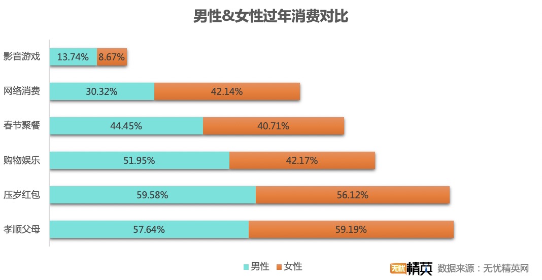 同時為了更好的了解今年的原地過年的消費變化,針對男女消費的差異,我們對調研者進行了深入了解。在今年春節(jié)的消費投入上,不論男女,上班族春節(jié)的開銷基本都在月薪的150%-200%之間,在開銷習慣上男女上班族整體比較接近,其中女性孝敬父母的開銷比例達到59.19%,比男性略高。春節(jié)疫情防控期間減少了非必要外出,網購年貨的方式遇上女性偏愛的網購習慣,打折與網店紅包,年貨、衣服、化妝品、包包等等,買買買簡直停不下手,使得這部分的支出占春節(jié)開銷的首位,并且還比男性高出約12%。同時春節(jié)期間電影票漲價,手機與網絡游戲更是老套路在春節(jié)期間推出各種氪金活動與商品,比如王者榮耀一款皮膚價格在77塊到177塊之間,春節(jié)期間一口氣推出了近十套皮膚,讓原地過年的宅男宅女們又多了一筆不菲開銷。而男性在游戲上的癡迷度與投入一項都會高于女性,春節(jié)期間影音游戲的支出高出了女性約6%點。