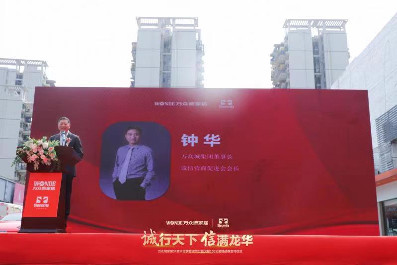 儀式上,誠(chéng)商會(huì)創(chuàng)會(huì)會(huì)長(zhǎng)、萬(wàn)眾城集團(tuán)董事長(zhǎng)鐘華致歡迎辭,他說(shuō),萬(wàn)眾城集團(tuán)自2009年開(kāi)始做誠(chéng)信建設(shè),創(chuàng)立了“誠(chéng)信基金”“誠(chéng)信沙龍”“5A級(jí)誠(chéng)信商戶(hù)評(píng)選”三板斧,將商戶(hù)有效投訴從十二年前的91起,商戶(hù)自覺(jué)誠(chéng)信經(jīng)營(yíng),往后每年未超過(guò)5起。萬(wàn)眾城既是誠(chéng)信建設(shè)者,也是受益者,投訴率和理賠率逐年下降,商家營(yíng)業(yè)額逐年上升。經(jīng)過(guò)嚴(yán)格的篩選和評(píng)審,萬(wàn)眾城家居評(píng)出了2020年度5A商戶(hù)共346戶(hù),并在當(dāng)天的儀式上給20名5A商戶(hù)代表授牌。