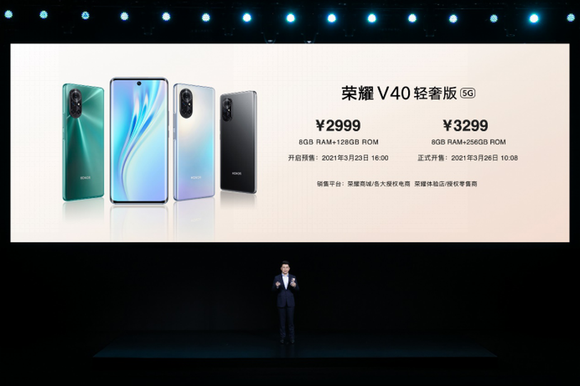榮耀V40輕奢版擁有幻夜黑、藍(lán)水翡翠和鈦空銀三種配色,提供8GB+128GB、8GB+256GB兩個內(nèi)存版本,售價分別為2999元和3299元。3月26日10:08在線上線下全平臺開售,用戶可通過榮耀商城及各大授權(quán)電商平臺或前往榮耀線下體驗店、榮耀授權(quán)零售門店進(jìn)行購買。