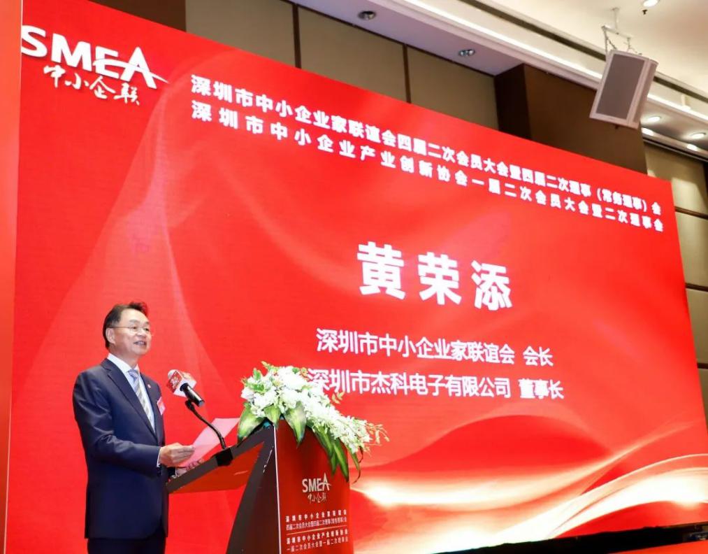 深圳市中小企業(yè)家聯(lián)誼會會長、深圳市杰科電子有限公司董事長黃榮添在致辭中首先對長期以來給予協(xié)會支持的各級領(lǐng)導(dǎo)、會員們表示衷心的感謝。深圳市中小企業(yè)家聯(lián)誼會自2010年9月20日成立以來,在市各級領(lǐng)導(dǎo)的指導(dǎo)和關(guān)懷下,已走過十年的歲月。深圳中小企聯(lián)感恩領(lǐng)導(dǎo)們的幫助與指導(dǎo),也感恩全體會員的信任與支持!黃會長表示:深圳中小企聯(lián)要緊跟時代步伐,認(rèn)清當(dāng)前形勢與任務(wù)并對協(xié)會工作提出以下幾方面要求:第一、找準(zhǔn)定位,正確履行協(xié)會職能。第二、充分發(fā)揮政企溝通的橋梁紐帶作用。第三、加強(qiáng)內(nèi)外資源有效聯(lián)接,擴(kuò)大中小企聯(lián)平臺影響力。