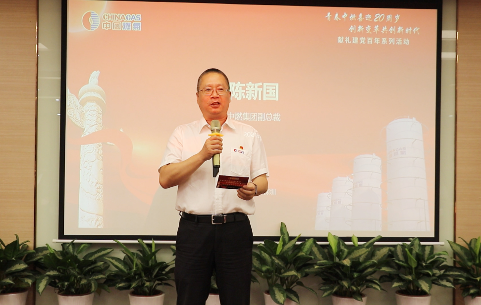 最后,中國燃氣副總裁、老黨員陳新國宣布“青春中燃喜迎20周歲、創(chuàng)新變革共創(chuàng)新時代”獻禮建黨百年系列活動開啟。