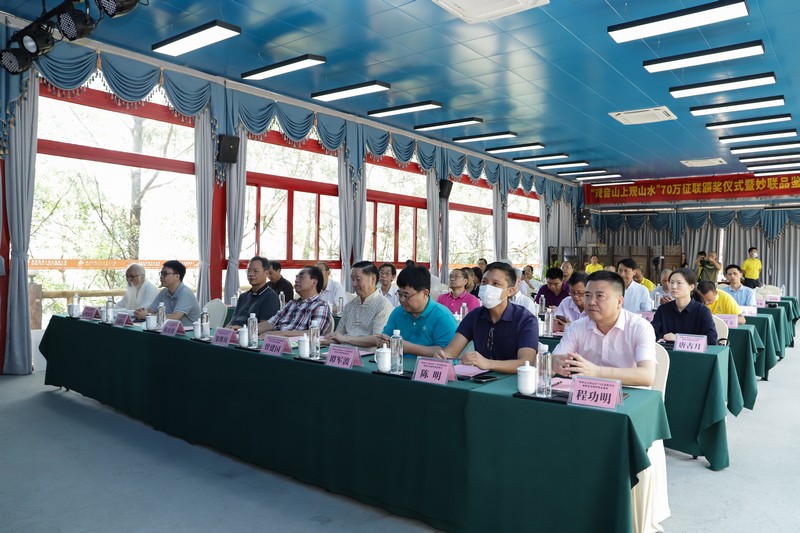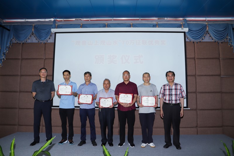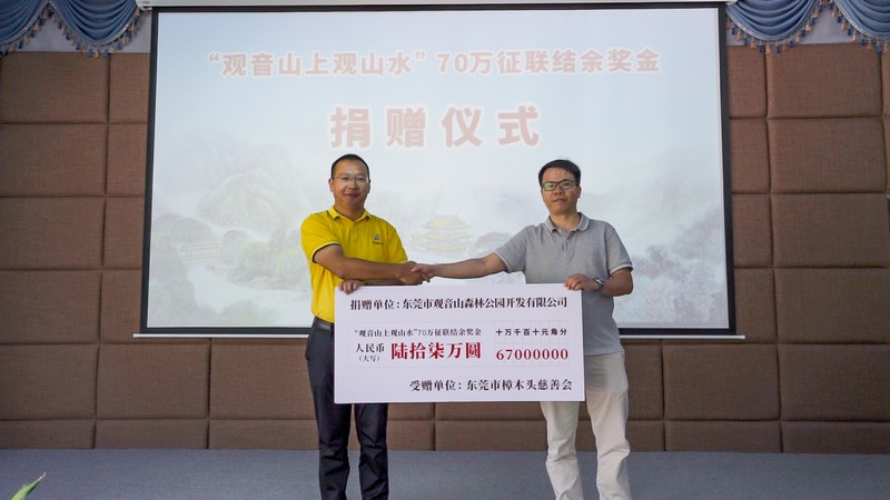 見圳客戶端·深圳新聞網(wǎng)2021年5月18日訊(記者 常軍平)“觀音山上觀山水”70萬征聯(lián)活動終有結果,評選出15句優(yōu)秀下聯(lián),最佳下聯(lián)空缺,并于5月17日在東莞觀音山舉行了頒獎儀式及妙聯(lián)品鑒座談會?;顒蝇F(xiàn)場,楹聯(lián)家們雅聚一堂,共同見證了本次征聯(lián)活動優(yōu)秀獎的頒出。以楹聯(lián)為媒,進行交流互動。活動期間,組委會代表東莞觀音山將結余款項67萬元悉數(shù)捐給東莞樟木頭鎮(zhèn)慈善會。鑒于觀音山在推動楹聯(lián)文化的傳承發(fā)展做出的突出貢獻,被中國楹聯(lián)學會授予“中國楹聯(lián)文化名山”稱號。