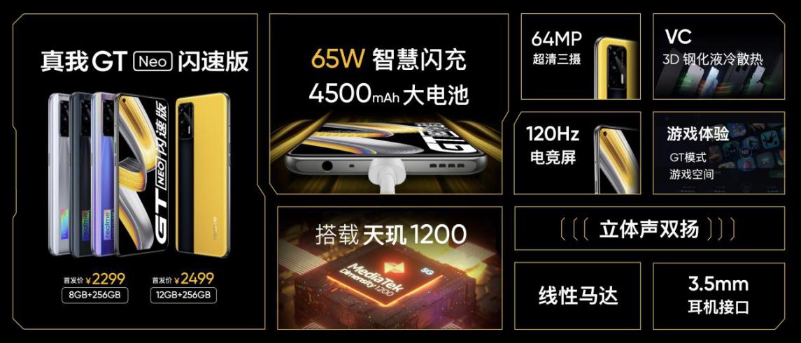 真我GT Neo閃速版閃充升級到了頂配65W,同時新增了“曙光”特別版。8GB+256GB版限時立減300元。除了閃速版,真我GT Neo也將參與限時活動,在原價基礎(chǔ)上再降200元。