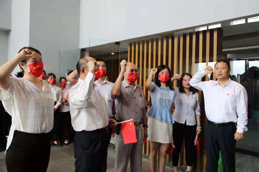 活動(dòng)的最后,全體黨員齊唱《沒(méi)有共產(chǎn)黨就沒(méi)有新中國(guó)》,激昂的旋律讓人熱血沸騰、心潮澎湃,既表達(dá)了聯(lián)洲信評(píng)愛(ài)黨愛(ài)國(guó)的情懷,也以此向中國(guó)共產(chǎn)黨成立100周年獻(xiàn)禮。