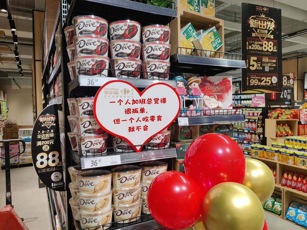 借著盛大開業(yè)的東風(fēng),家樂福社區(qū)品質(zhì)中心店推出了“優(yōu)品物語”的趣味逛店活動(dòng)。該活動(dòng),在原本干巴巴的價(jià)格指示牌下面增加了諸如,“一個(gè)人吃飯很孤單,但一個(gè)人吃零食就不會(huì)”“隔壁的,你和卷心菜是什么關(guān)系?我是反內(nèi)卷菜系”“櫻桃:要我一口能讓你大紅”“藍(lán)莓:我還爆漿!能讓你大紫”等“Z世代”語言,吸引大家來發(fā)掘逛超市的趣味。不但年輕的小情侶可以在下班后默契地相視一笑,也吸引到小紅書的博主們競(jìng)相探店打卡。既賦予了購物一點(diǎn)有趣和人性化,也給這屆年輕人動(dòng)輒發(fā)圈、種草的社交型消費(fèi)加點(diǎn)料。