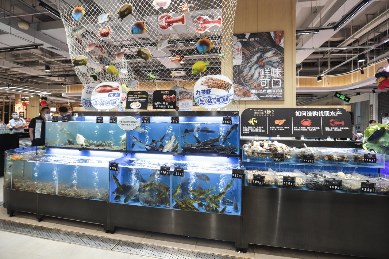 家樂福社區(qū)品質(zhì)生活中心經(jīng)營(yíng)面積約3000㎡,主打中高端、進(jìn)口、網(wǎng)紅商品,門店有近15000種商品。