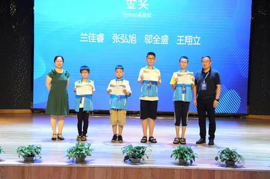 所有選手身體力行彰顯競賽精神,一絲不茍。Python初級組和高級組競賽中還產出一位雙料冠軍。來自青島賽場三年級的蘭佳睿選手,斬獲兩個組別冠軍,尤其在Python高級組競賽中最后一分鐘反超,擊敗多位高年級選手,編程實力強勁!