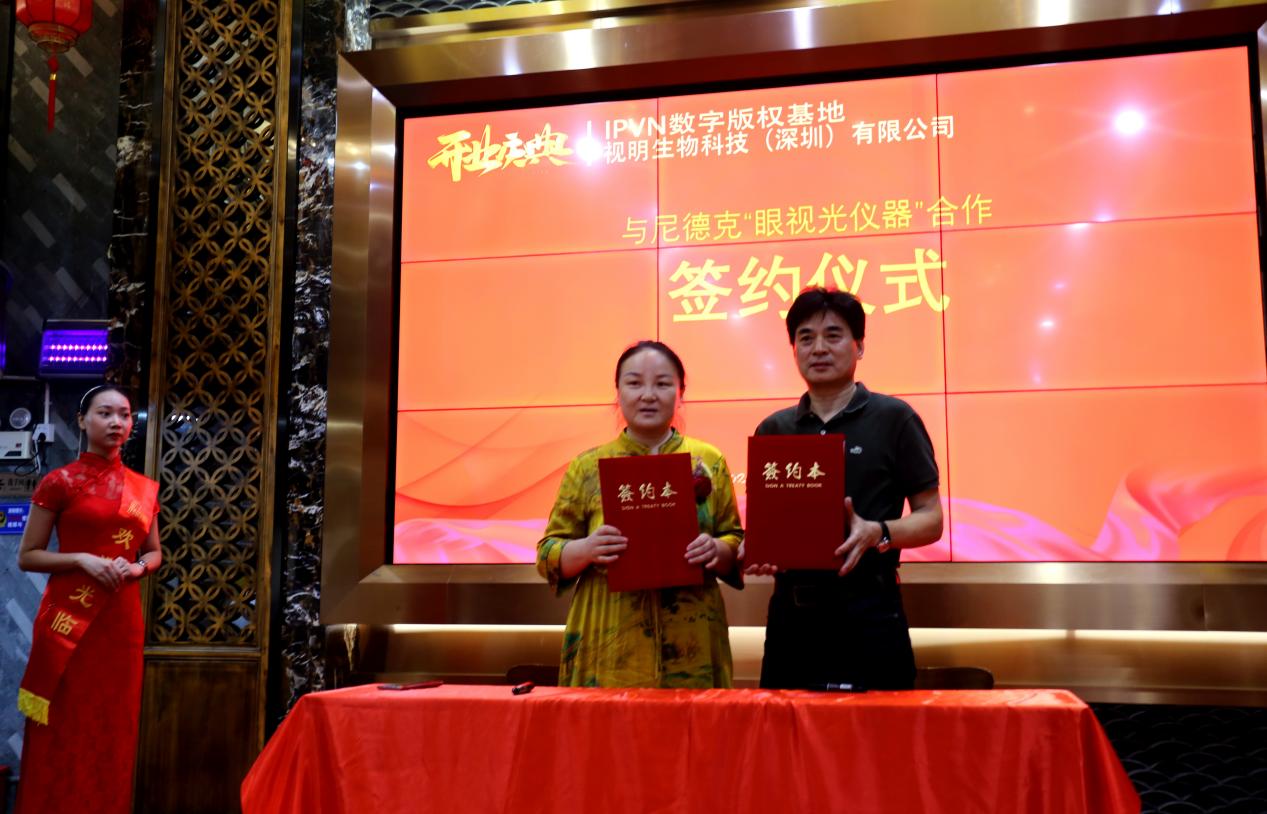 讀特客戶端 ·深圳新聞網(wǎng)2021年8月25日訊(記者 張俊達(dá) )23日,深圳首家 IPVN數(shù)字版權(quán)基地(文化科技數(shù)字版權(quán)基地)與視明生物科技(深圳)有限公司,在深圳龍崗豐收大廈688室、410室同時(shí)舉行開業(yè)慶典。景泰藍(lán)平面發(fā)明之父李偉平、國家一級(jí)演員趙國強(qiáng)、中華文化研究學(xué)者廖圣澤、吳膺青教授、黃炳南教授、陳志隆博士等一百多位嘉賓到場祝賀。