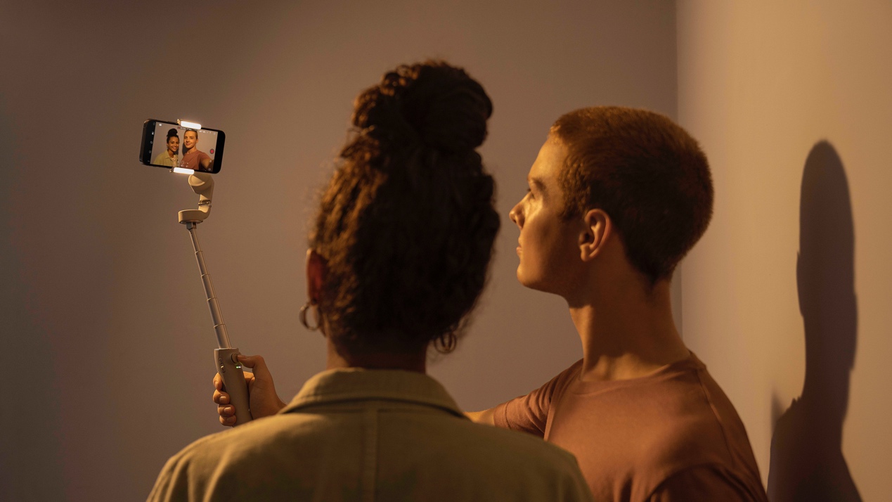 DJI OM5穩(wěn)定的硬件設(shè)計(jì)保障了用戶拍攝穩(wěn)定畫面,全新推出“拍攝指導(dǎo)”功能將為用戶提供拍攝思路、拍攝技巧和剪輯方案,讓用戶用簡(jiǎn)單輕松的方式隨時(shí)表達(dá)心中所想。在配合DJI Mimo app使用時(shí),將手機(jī)鏡頭對(duì)準(zhǔn)想要拍攝的主體或場(chǎng)景, OM5將智能識(shí)別當(dāng)下場(chǎng)景,推薦適合當(dāng)下場(chǎng)景的拍攝手法,在選擇相應(yīng)模板后OM5會(huì)智能設(shè)置好各類參數(shù)。在實(shí)際拍攝過程中, DJI Mimo界面也將展現(xiàn)第三人稱的教學(xué)畫面,用戶按照提示即可拍攝同款畫面。拍攝完成之后,“拍攝指導(dǎo)”會(huì)根據(jù)拍攝的素材智能推薦一鍵剪輯成片,讓記錄、剪輯、成片一氣呵成,從未如此簡(jiǎn)單。