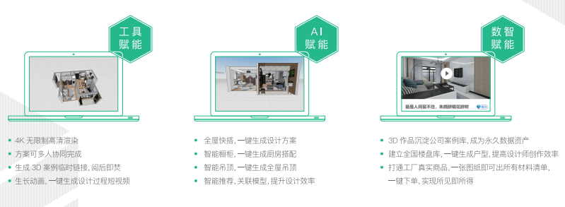 針對(duì)這一痛點(diǎn),圖滿意滲透了用戶從靈感搜集、量房簽約到施工選材的全流程,為裝企提供從獲客到簽單的全鏈路賦能。同時(shí),圖滿意正在打造集樓盤庫、案例庫、方案庫與商品庫于一體的智能設(shè)計(jì)系統(tǒng),搭建圖滿意場(chǎng)景化銷售平臺(tái)以及運(yùn)營(yíng)體系,助力裝企實(shí)現(xiàn)一站式銷售。