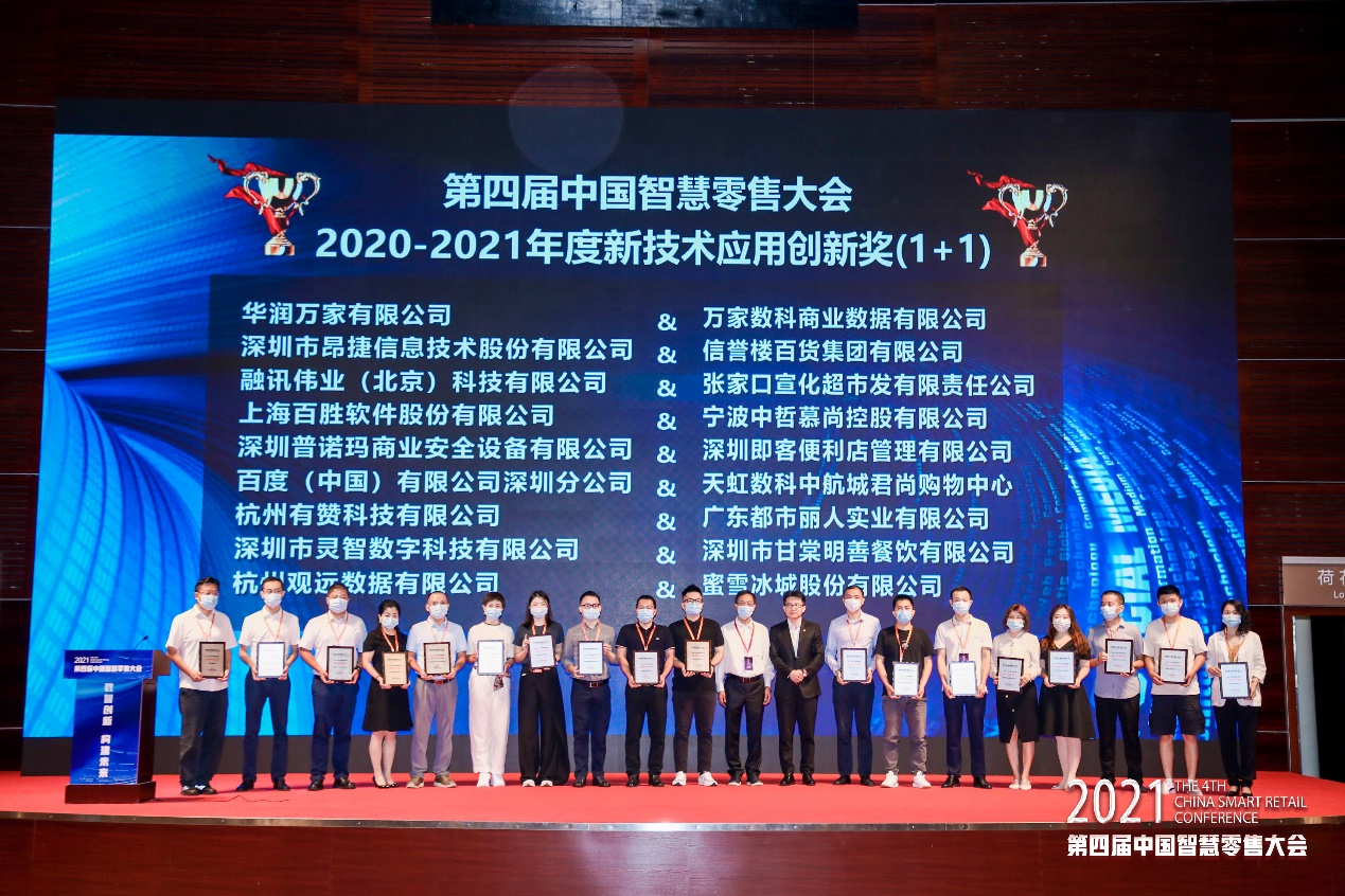 大會(huì)開幕式上頒發(fā)“2020-2021年度智慧零售系列大獎(jiǎng)”,大會(huì)組委會(huì)從行業(yè)新技術(shù)應(yīng)用創(chuàng)新;經(jīng)營(yíng)、商業(yè)、組織、管理、服務(wù)等模式創(chuàng)新;全渠道、全產(chǎn)業(yè)鏈、全生產(chǎn)要素賦能等生態(tài)創(chuàng)新;領(lǐng)軍者推動(dòng)智慧零售創(chuàng)新發(fā)展等四個(gè)維度,共頒發(fā):新技術(shù)應(yīng)用創(chuàng)新獎(jiǎng)、模式創(chuàng)新獎(jiǎng)、生態(tài)創(chuàng)新獎(jiǎng)、創(chuàng)新人物獎(jiǎng)四大獎(jiǎng)項(xiàng)。華潤(rùn)萬(wàn)家、靈智數(shù)科、有贊、樂信等企業(yè)獲此榮譽(yù),天虹股份譚曉華、百果園焦岳等人獲得創(chuàng)新人物獎(jiǎng)。