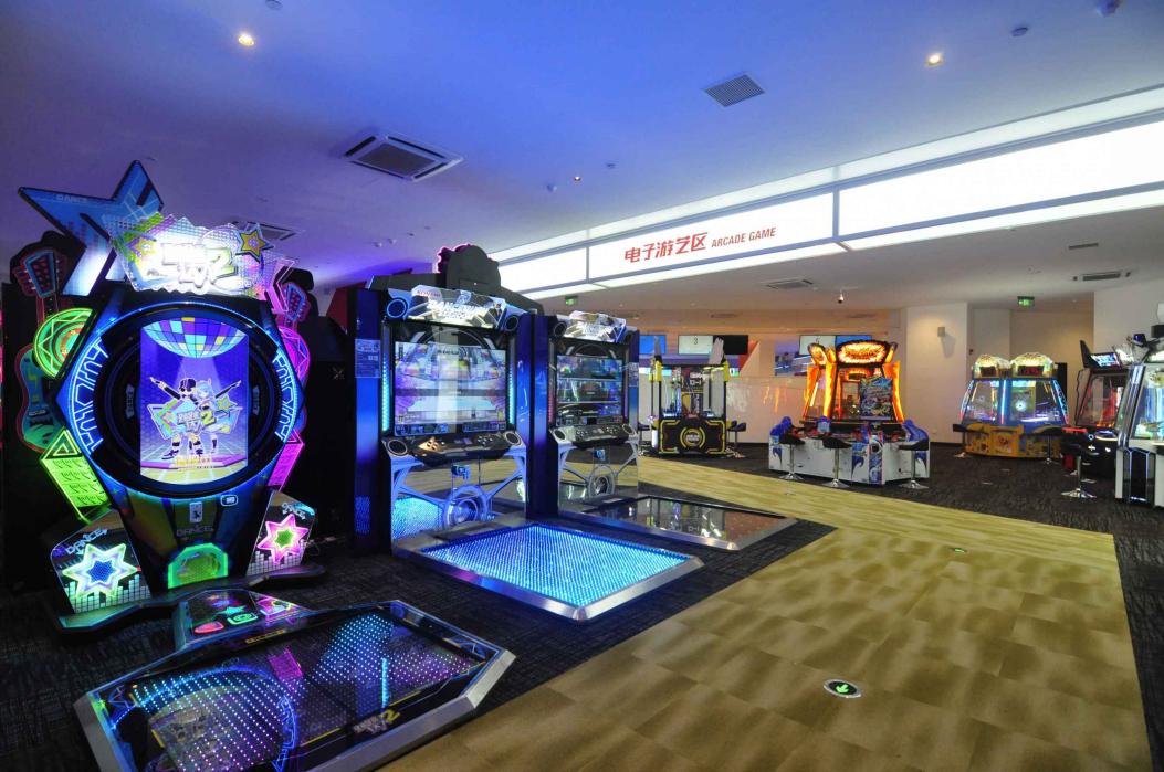 大型電子游藝區(qū)域,此區(qū)域的占地比廣州店更大,并引入了全新的大型游樂設施,在這里可以享受到260臺以上的豐富游戲。抓娃娃機、推硬幣游戲、音樂游戲、體育類游戲等深受年輕人們喜愛的游戲在此齊聚一堂。為了能讓客人體驗到最新的機種,游戲器械也在隨時進行更新,讓客人忘卻時間流逝,流連忘返,樂不思蜀!