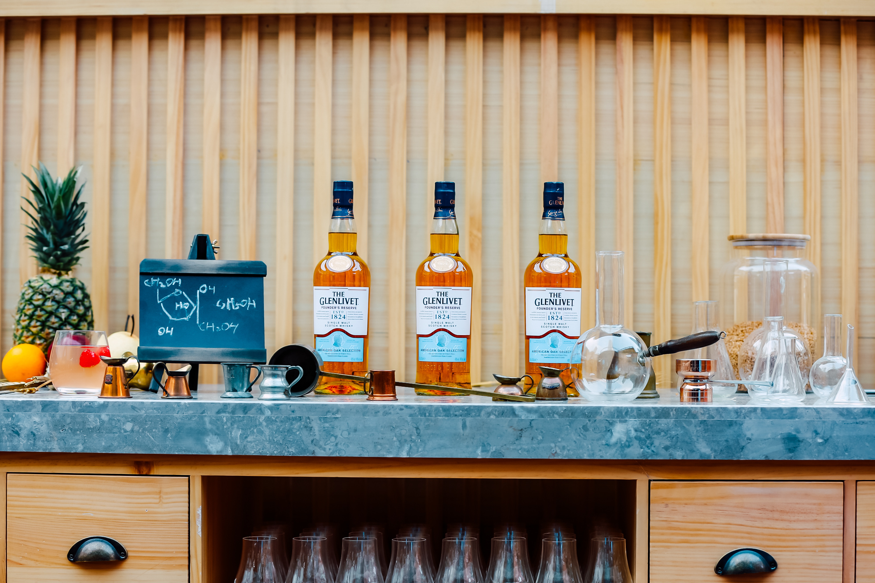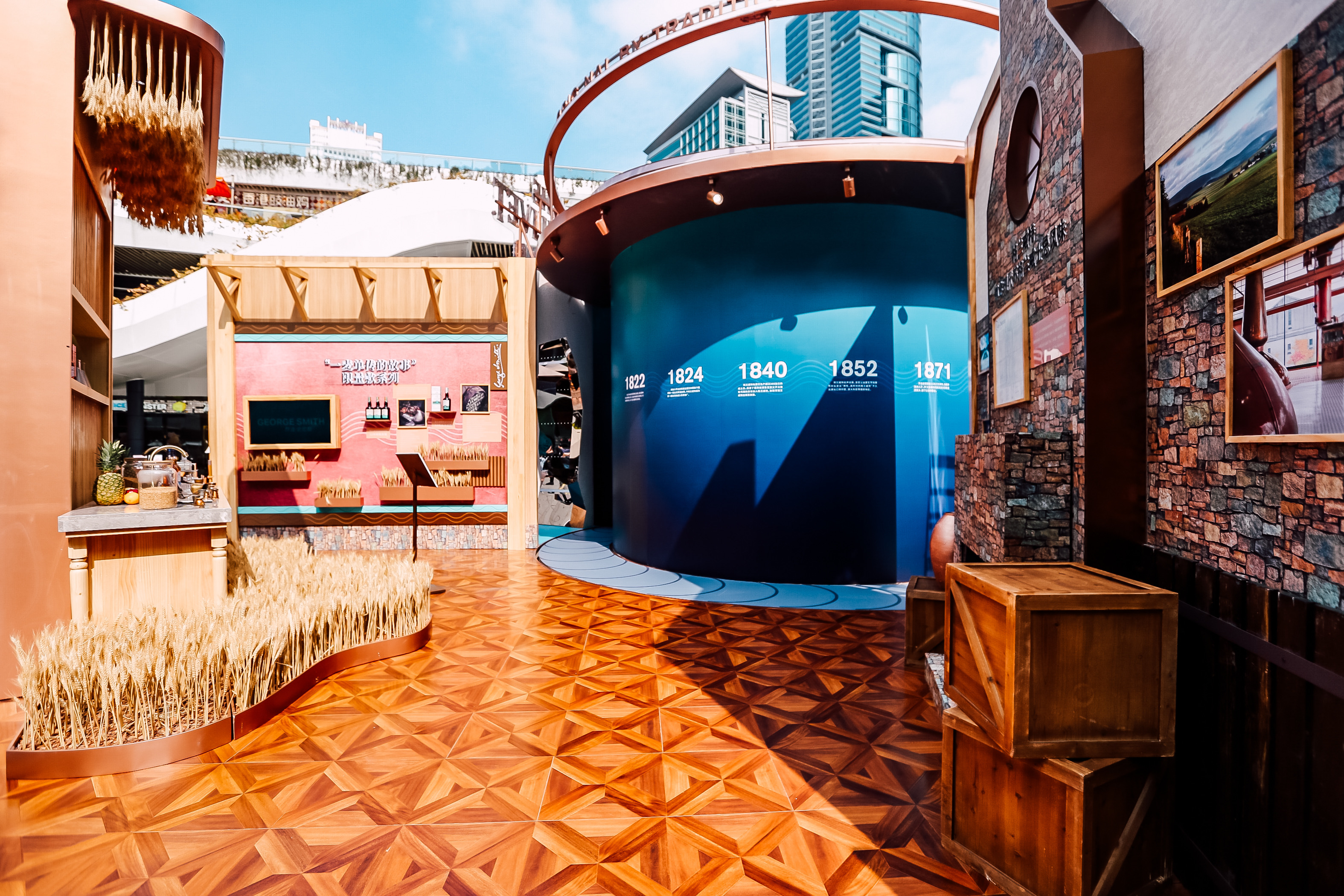 時(shí)光穿梭酒廠入口以“破墻而出”的投影裝置為來賓開啟時(shí)光隧道的大門,極具震撼力的視覺畫面展現(xiàn)格蘭威特打破傳統(tǒng)、大膽顛覆的創(chuàng)新精神,一段奇妙的旅程便由此開啟。踏上傳送帶,來賓首先抵達(dá)還原了一間復(fù)古簡陋的茅草屋的“創(chuàng)始人蒸餾室”,作為格蘭威特的發(fā)源地,品牌創(chuàng)始人喬治·史密斯先生百年前便在此秘密蒸餾了首批格蘭威特單一麥芽威士忌。古樸的木質(zhì)操作臺上擺放著調(diào)配實(shí)驗(yàn)中所需的各種儀器,灰磚墻面上展示著酒廠各時(shí)期的歷史照片,列架上則陳列了向喬治 ·史密斯先生致敬的創(chuàng)始人甄選單一麥芽威士忌,帶領(lǐng)威士忌愛好者們跨越時(shí)空回顧專屬格蘭威特的傳奇歷史和傳承。值得一提的是,繼12年秘密蒸餾發(fā)布后,格蘭威特“一麥單傳的故事”限量系列中的第二款全新杰作——12年創(chuàng)始佳釀限量版也在此處正式亮相。采用“初填雙橡木桶威士忌”制作理念,這款佳釀以其特有的宜人果香為原始的斯佩塞威士忌賦予了全新風(fēng)味。格蘭威特以此紀(jì)念喬治?史密斯先生成為當(dāng)?shù)芈氏全@得威士忌制作許可的蒸餾師的傳奇歷史,向其敢為人先的勇氣致敬。