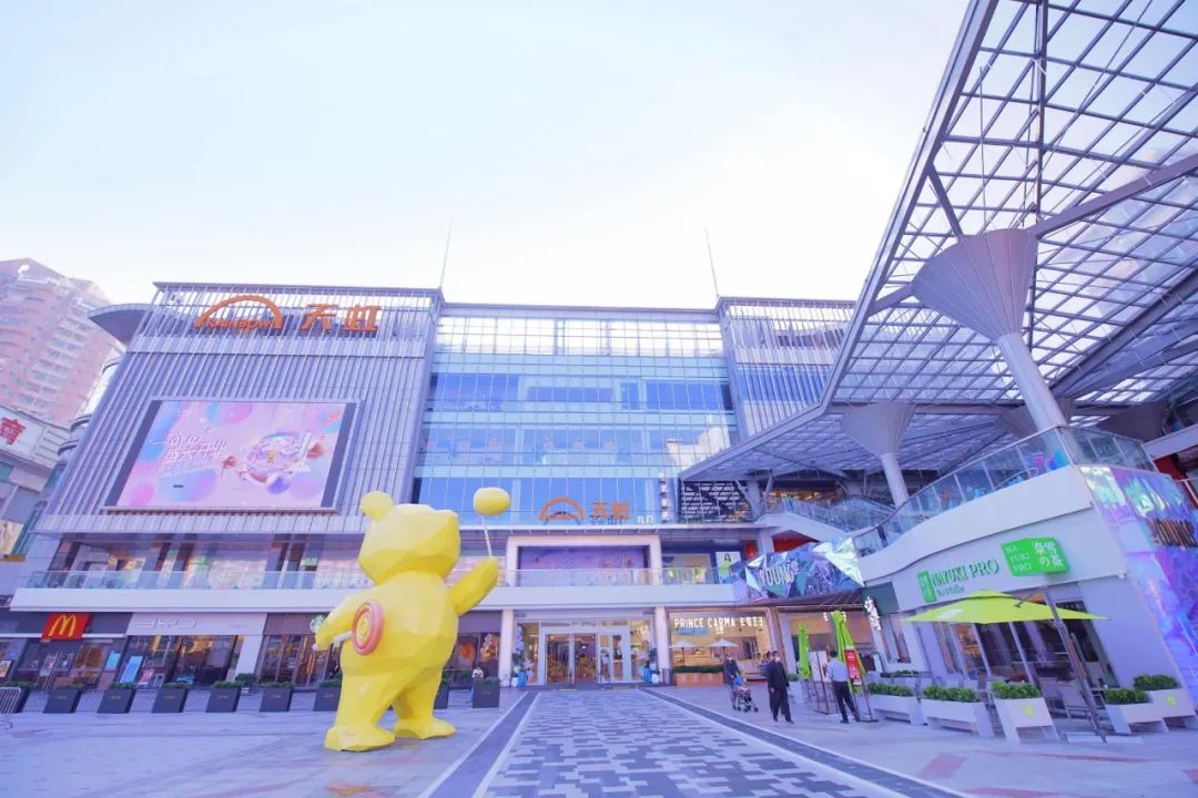 常平天虹購物中心擁有特色十足的盒子+情景主題街區(qū)建筑布局。多首層式設(shè)計,讓顧客可以自由地從不同樓層進入商場,打破傳統(tǒng)“盒子”建筑的封閉空間感,使逛街充滿樂趣。購物中心門前的常平首家 IP休閑歡樂廣場,擁有6米高泡泡熊雕塑、燈光音樂噴泉等娛樂設(shè)施,為周邊居民創(chuàng)造一個可玩、可親、可打卡的戶外體驗空間。