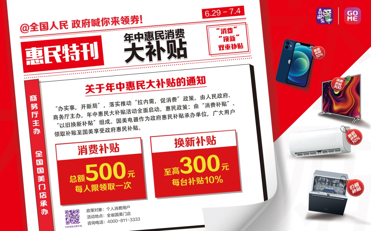 為推動(dòng)“拉內(nèi)需,促消費(fèi)”的政府惠民政策落地,國美于6月21日開啟“年中惠民消費(fèi)大補(bǔ)貼”活動(dòng),持續(xù)到7月4日,全力助推消費(fèi)者品質(zhì)生活提升,提振消費(fèi)信心。