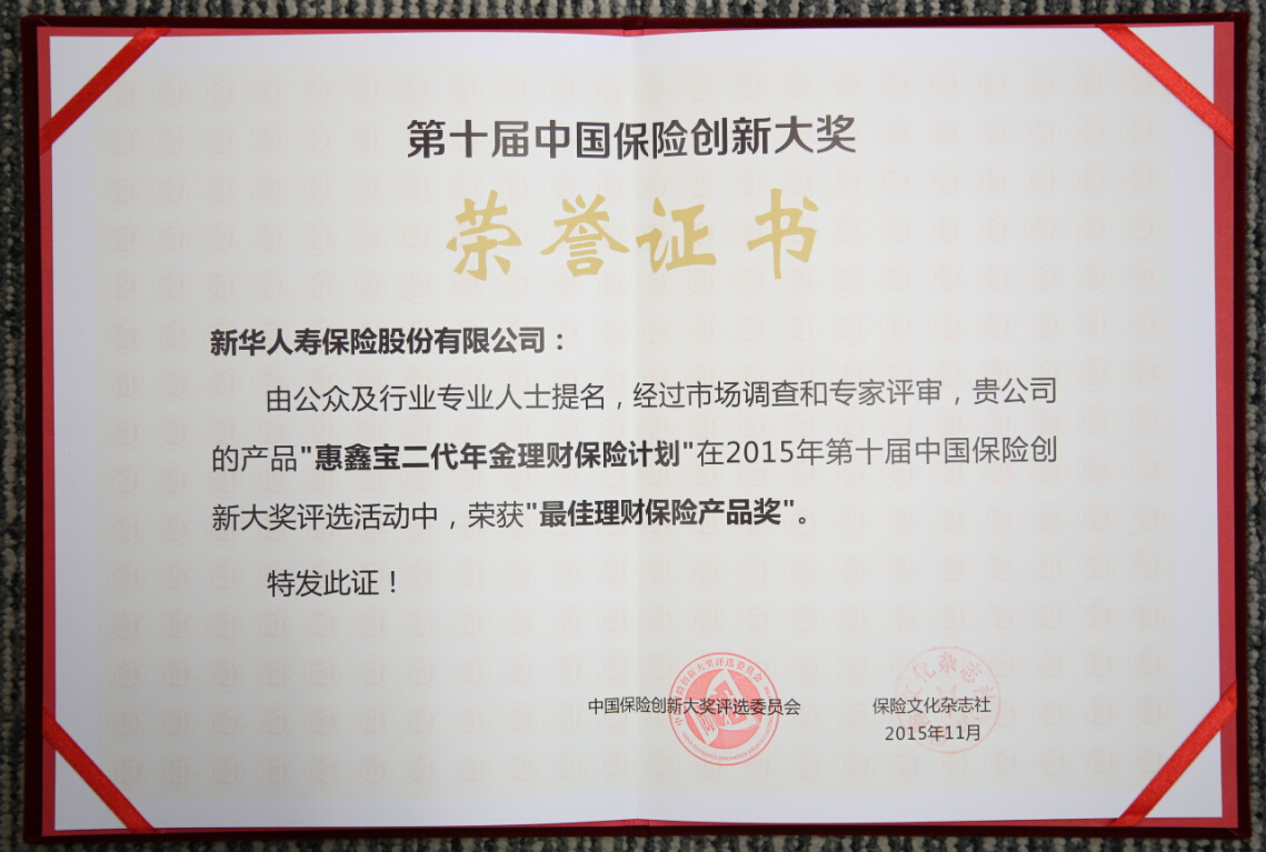 2015最佳理財保險產(chǎn)品獎