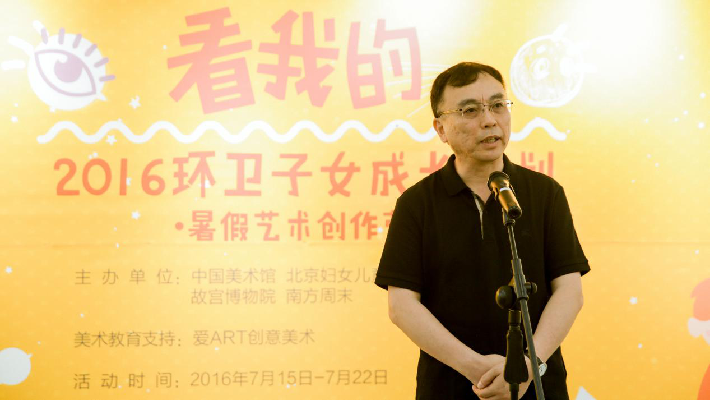 7月15日,“看我的” 2016環(huán)衛(wèi)子女成長(zhǎng)計(jì)劃?暑期藝術(shù)創(chuàng)作營(yíng)在中國(guó)美術(shù)館正式開營(yíng)。北京婦女兒童發(fā)展基金會(huì)秘書長(zhǎng)翟串聯(lián)、華夏銀行總行辦公室主任張國(guó)偉、南方周末副總經(jīng)理孟登科、中國(guó)美術(shù)館公共教育部副主任楊應(yīng)時(shí)、指導(dǎo)藝術(shù)家代表方旭東等嘉賓出席當(dāng)天開營(yíng)儀式。