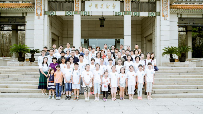 圖說(shuō):中國(guó)美術(shù)館館長(zhǎng)吳為山、副館長(zhǎng)胡偉與參加活動(dòng)的嘉賓、環(huán)衛(wèi)子女及家長(zhǎng)合影留念,表達(dá)對(duì) “2016環(huán)衛(wèi)子女成長(zhǎng)計(jì)劃”項(xiàng)目的支持。