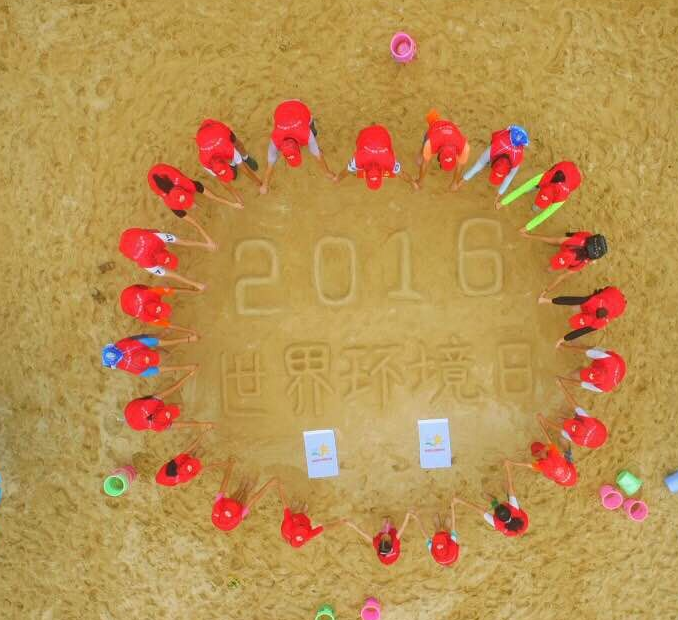 在徐賢、姚軍的鼓勵和幫助下,劉曉紅組織了第一場文明微行動——2016年6月5日大梅沙沙灘世界環(huán)境日宣傳。她為此活動制定了在沙灘砌立體字宣傳環(huán)保的方案,這看起來簡單實際的方案對于劉曉紅她們這些第一次堆沙字的自愿者來說難度可不小?;顒赢?dāng)天,當(dāng)她和微友們齊心協(xié)力把大家心中的“2016世界環(huán)境日”這幾個大字成功堆砌出來,向沙灘的游客宣傳“人人參與環(huán)保,世界才會更加美好”時,每位參與的志愿者都興奮得圍著“2016世界環(huán)境日”在沙灘上跳起來。