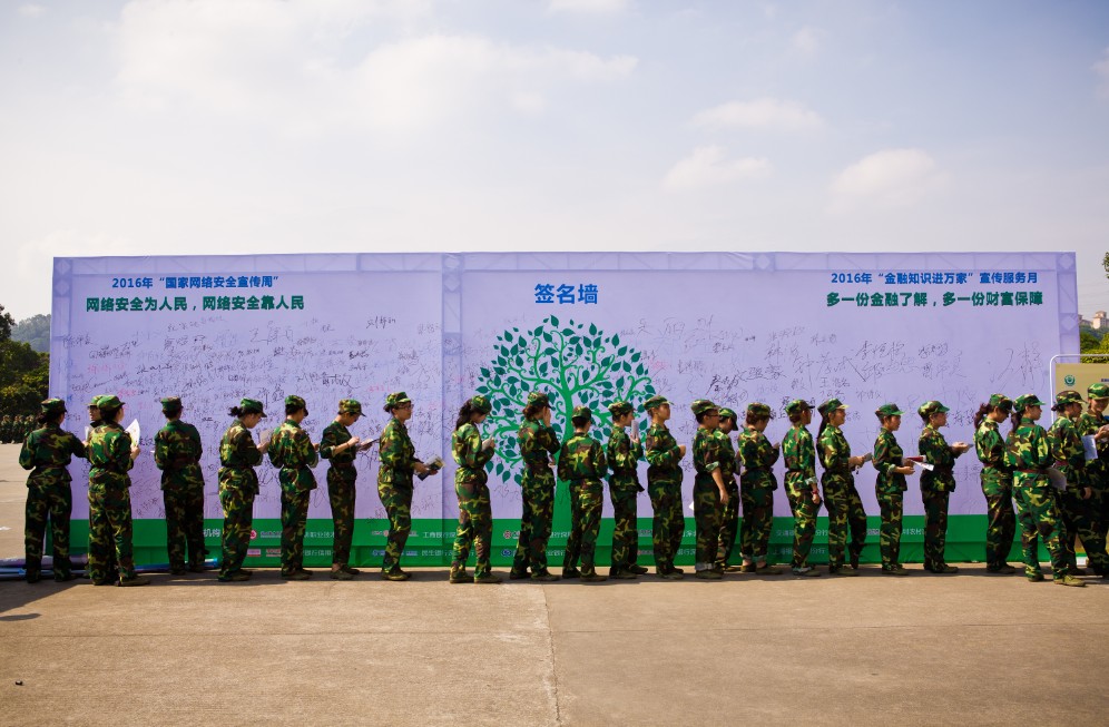 近4000名深圳職業(yè)技術(shù)學(xué)院的大一新生積極參與,在各個展位前領(lǐng)取宣傳手冊、折頁,并在簽名版上爭相簽名留念。但這場活動并不是在深圳職業(yè)技術(shù)學(xué)院校園,而是在深圳國防教育基地。