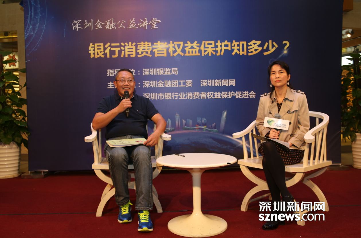 近日,深圳銀行業(yè)以“3.15國際消費(fèi)者權(quán)益保護(hù)日”為契機(jī),對(duì)金融消費(fèi)者權(quán)益保護(hù)知識(shí)進(jìn)行了多方位宣傳。3月18日下午,“深圳金融公益講堂—銀行消費(fèi)者權(quán)益保護(hù)知多少”活動(dòng)在中心書城舉行。本次活動(dòng)在深圳銀監(jiān)局指導(dǎo)下,由深圳金融團(tuán)工委、深圳新聞網(wǎng)、深圳市銀行業(yè)消費(fèi)者權(quán)益保護(hù)促進(jìn)會(huì)(以下簡(jiǎn)稱“銀促會(huì)”)主辦?;顒?dòng)中,深圳銀監(jiān)局副局長(zhǎng)欒鋒及各家商業(yè)銀行相關(guān)負(fù)責(zé)人與廣大市民進(jìn)行了深入而卓有成效的溝通交流。