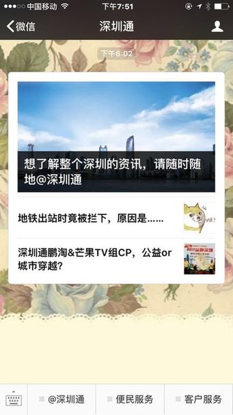 “@深圳通”是“@深圳”為深圳通量身定做的專屬頁面,根據(jù)“深圳通”生產(chǎn)的內(nèi)容,進(jìn)行整合優(yōu)化,選取與“深圳通”息息相關(guān)的新聞資訊。