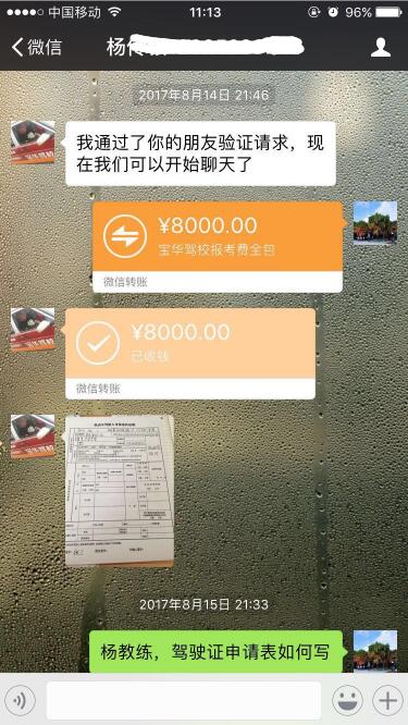 2017年8月,陳先生與寶華駕校教練員楊某銀簽《駕駛員培訓(xùn)合同》,并支付了全款培訓(xùn)費(fèi)用8000元(見微信截圖)。2018年1月,陳先生通過科目二考試后,與楊某預(yù)約科目三考試。楊某提出要再次收費(fèi)(詳見聊天記錄)。陳先生與楊某溝通無效后,向該教練掛靠的寶華駕校投訴維權(quán),寶華駕校反應(yīng)“其一,駕校不接收學(xué)員不與學(xué)員簽合同;其二,教練的投訴先調(diào)查了解”,后續(xù)再無反饋。