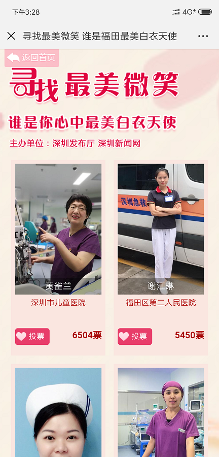 ② 多個(gè)投票活動(dòng)已經(jīng)形成良好群眾效應(yīng),合作方主辦方多屆舉辦,每屆舉辦均由深圳新聞網(wǎng)負(fù)責(zé)投票系統(tǒng)開發(fā),例如:健康場(chǎng)所投票、集團(tuán)攝影大賽評(píng)選投票、政務(wù)類投票。形成了良好品牌效應(yīng)和示范,往往一個(gè)區(qū)舉辦的投票活動(dòng)其他區(qū)會(huì)跟進(jìn)舉辦,形成系列投票,例如:“最美護(hù)士”系列投票,“最美醫(yī)生”系列投票,“最美教師”系列投票,“最佳政務(wù)”系列投票等;